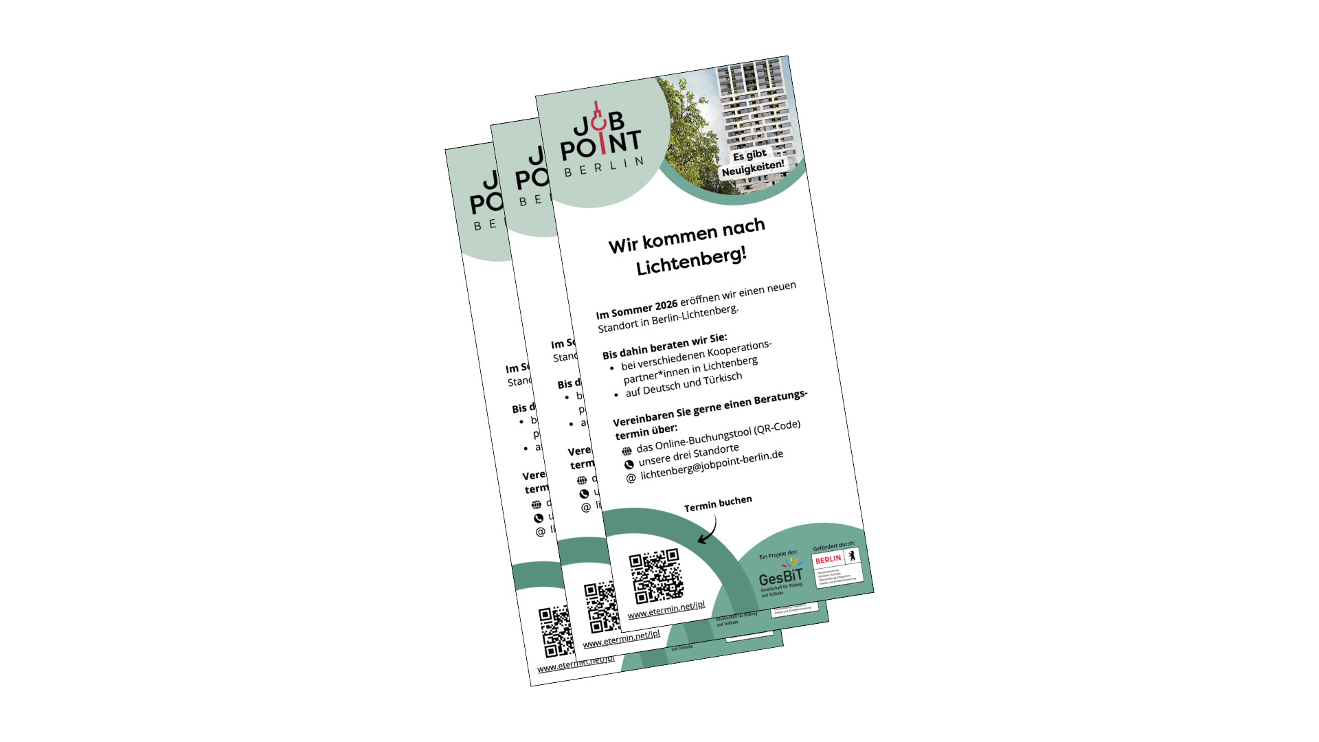 Flyer mit Informationen zu unseren Angeboten für Arbeitssuchende